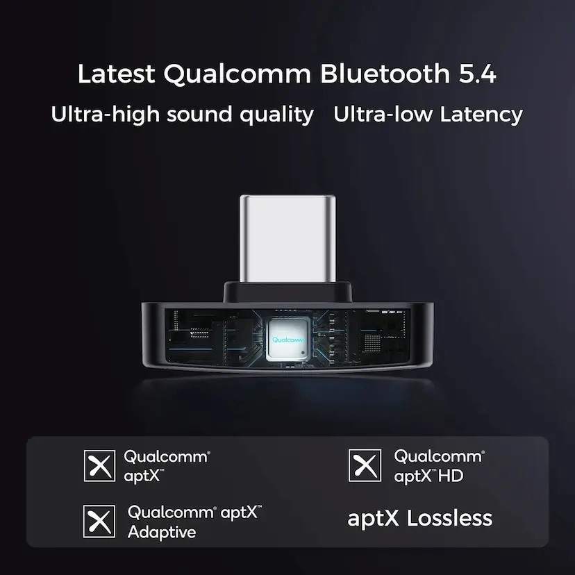 曠世之聲自三年前與高通公司展開深度預研技術合作,攜手研發音頻科技技術。 QCCDongle & QCC Dongle Pro 搭載高通最新一代驍龍暢聽(Snapdragon Sound™)技術,憑藉藍牙5.4的超高傳輸速度和穩定性,確保音質無損、延遲極低。支援 aptX、aptX HD、aptX Adaptive、aptX Lossless 編解碼技術,帶來高音質音訊體驗。目前,本產品已全面通過高通驍龍暢聽認證,完美融合卓越音質與頂級性能。