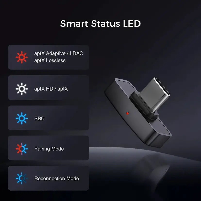 QCC Dongle & QCC Dongle Pro 的狀態指示燈,它能以直觀的方式將設備連接狀態與編碼模式清晰呈現,用戶無需複雜操作即可獲取關鍵信息,讓藍牙設備使用更有效率便捷。
