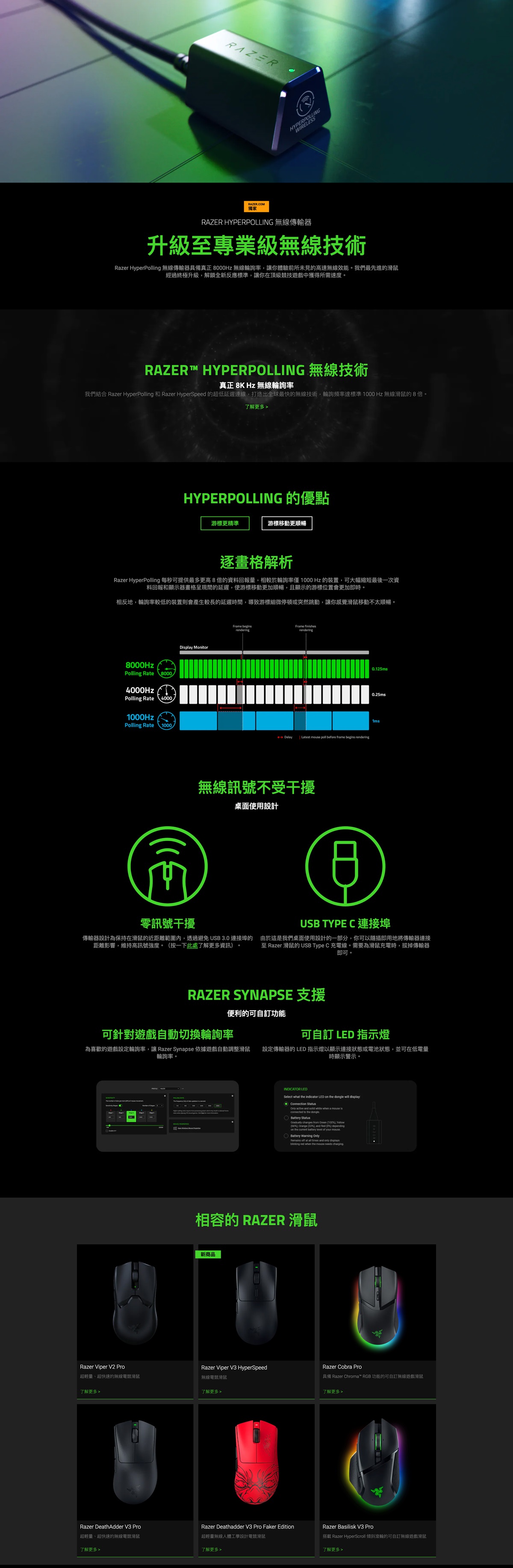 • 相容產品:Razer DeathAdder V3 HyperSpeed、Razer Cobra Pro、Razer Cobra HyperSpeed、Razer Viper V2 Pro、Razer DeathAdder V3 Pro 和 Razer Basilisk V3 Pro。