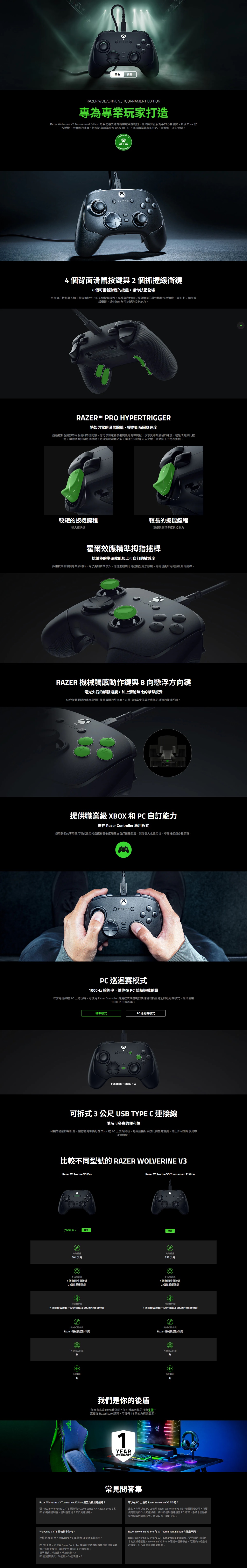 Razer Wolverine V3 Tournament Edition 是我們最先進的有線電競控制器,讓你擁有征服對手的必要優勢。具備 Xbox 官方授權,用優異的速度、控制力與精準度在 Xbox 與 PC 上展現職業等級的技巧,掌握每一次的榮耀。