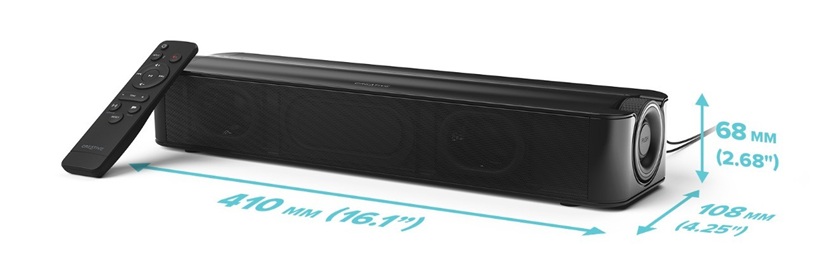 Creative Stage SE 配備了Sound Blaster的Clear Dialog和Surround音頻處理技術,可為您提供更好的人聲清晰度和寬廣的環繞聲體驗。 您可以在自己舒適的家中享受類似電影院的體驗,亦可以全神貫注於屏幕而無需閱讀字幕就可以聽清所有對話。