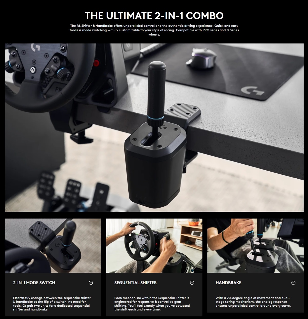 RS 排檔桿和手煞車提供無與倫比的操控體驗和真實的駕駛體驗。快速便捷的免工具模式切換-完全可依照您的賽車風格進行客製化。適用於 PRO 系列和 G 系列方向盤。