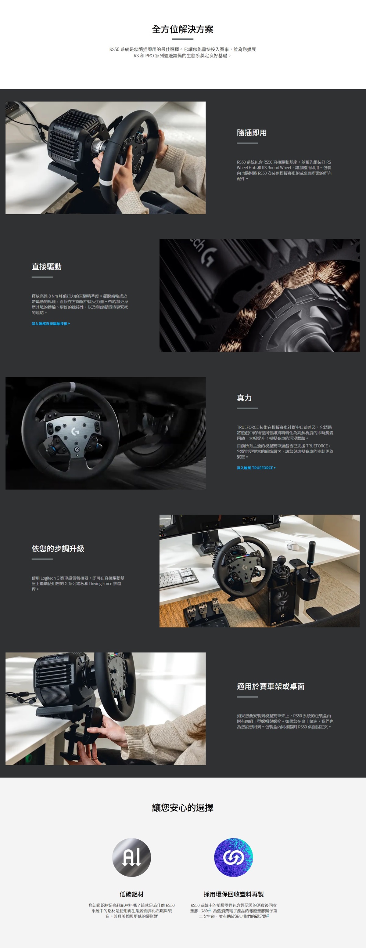 RS50 系統是您隨插即用的最佳選擇。它讓您能盡快投入賽事,並為您擴展 RS 和 PRO 系列週邊設備的生態系奠定良好基礎。