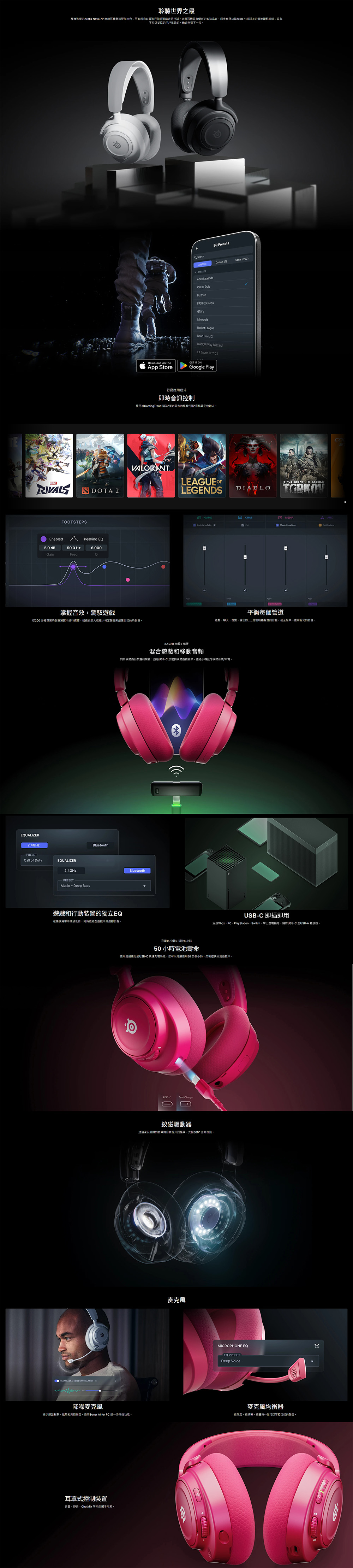 屢獲殊榮的Arctis Nova 7X 無線耳機變得更加出色,可對所有裝置進行即時遊戲音訊控制。這款耳機擁有優質的製造品質、同步藍牙功能和50 小時以上的電池續航力,是為不想妥協的用戶準備的。歡迎來到下一代。