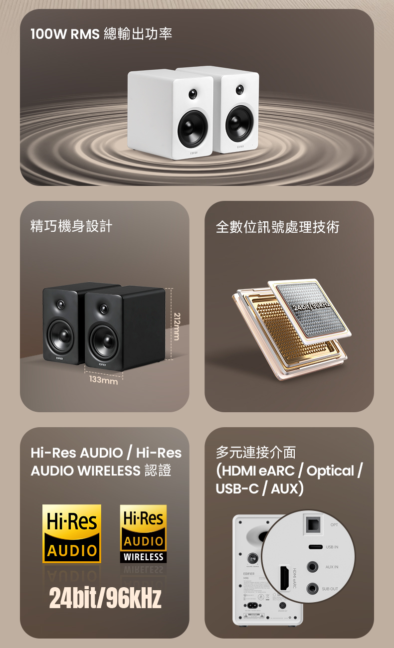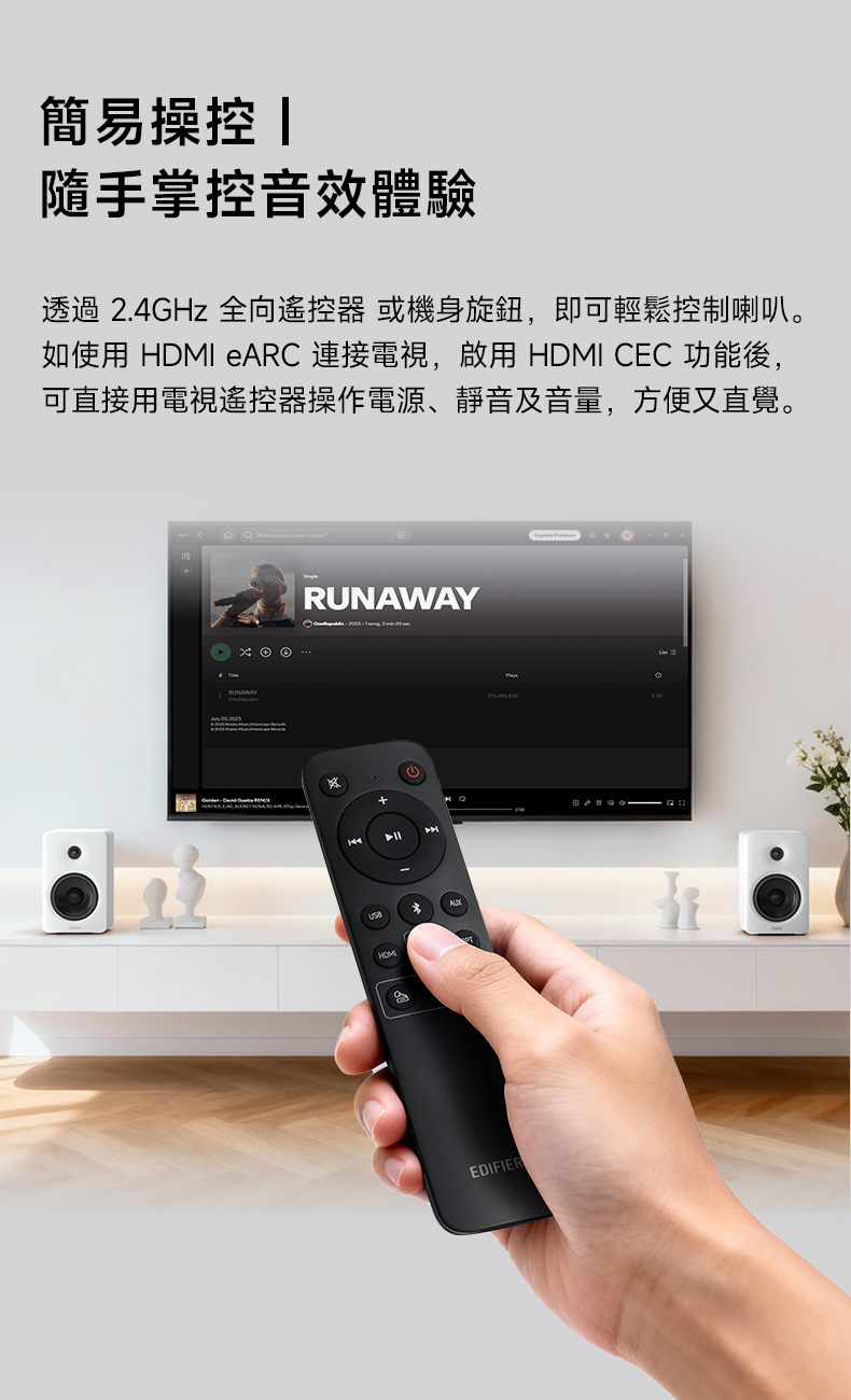 • 音訊輸入: Bluetooth, HDMI eARC, Optical, USB-C, AUX