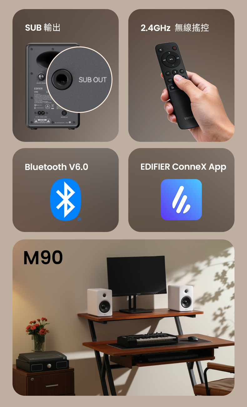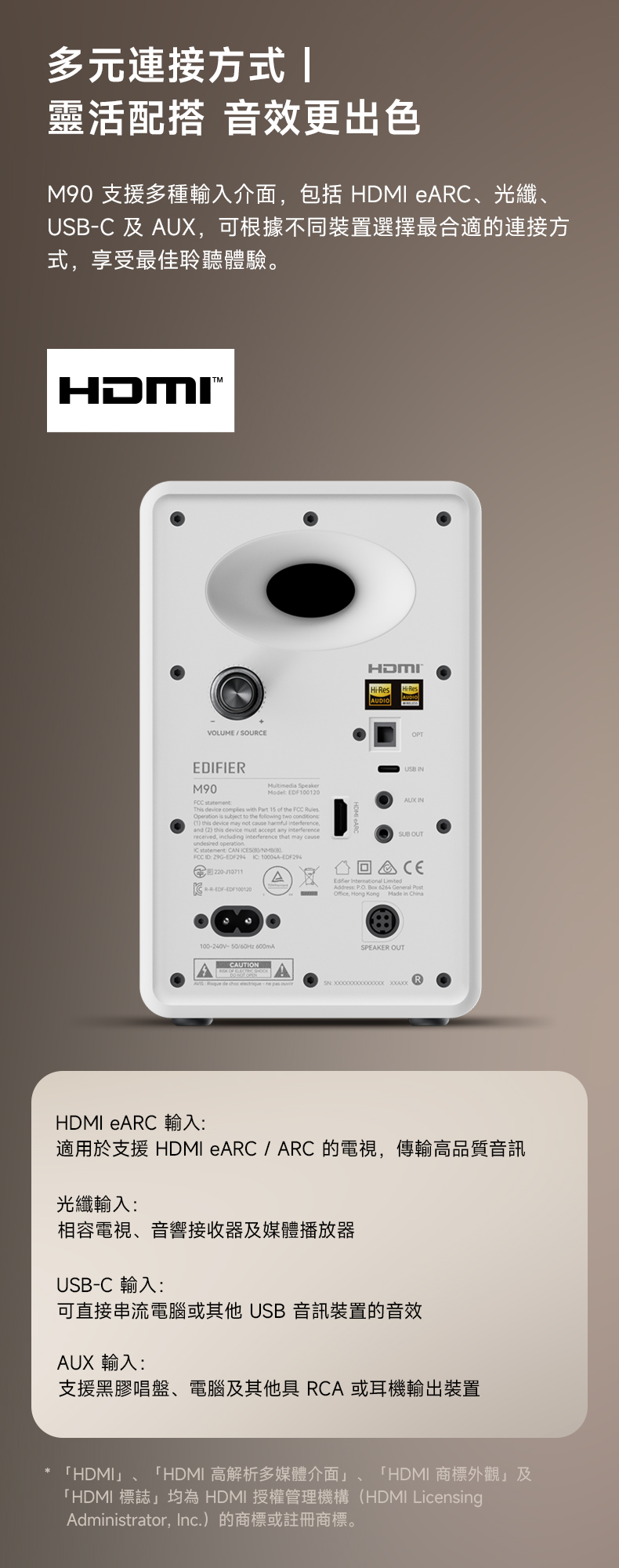 Edifier - M90 2.0 主動式喇叭 - 藍牙/ HDMI eARC/ 光纖/ USB-C/ AUX (黑色/白色)