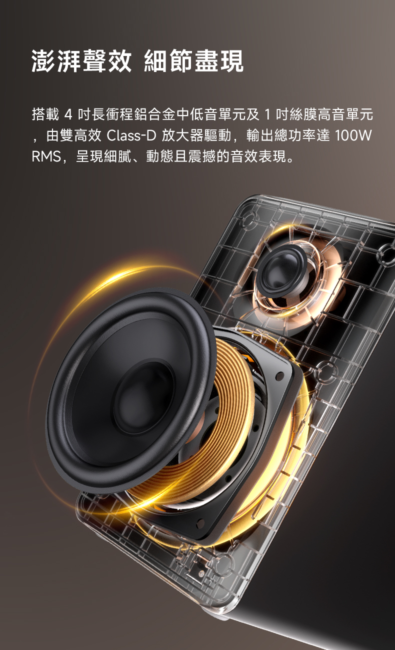 • 總輸出功率(RMS): 100W RMS (35W × 2 + 15W × 2)x 2