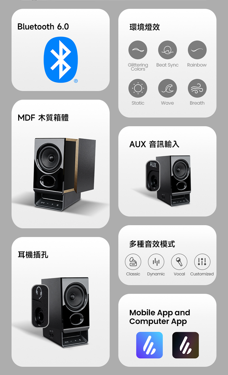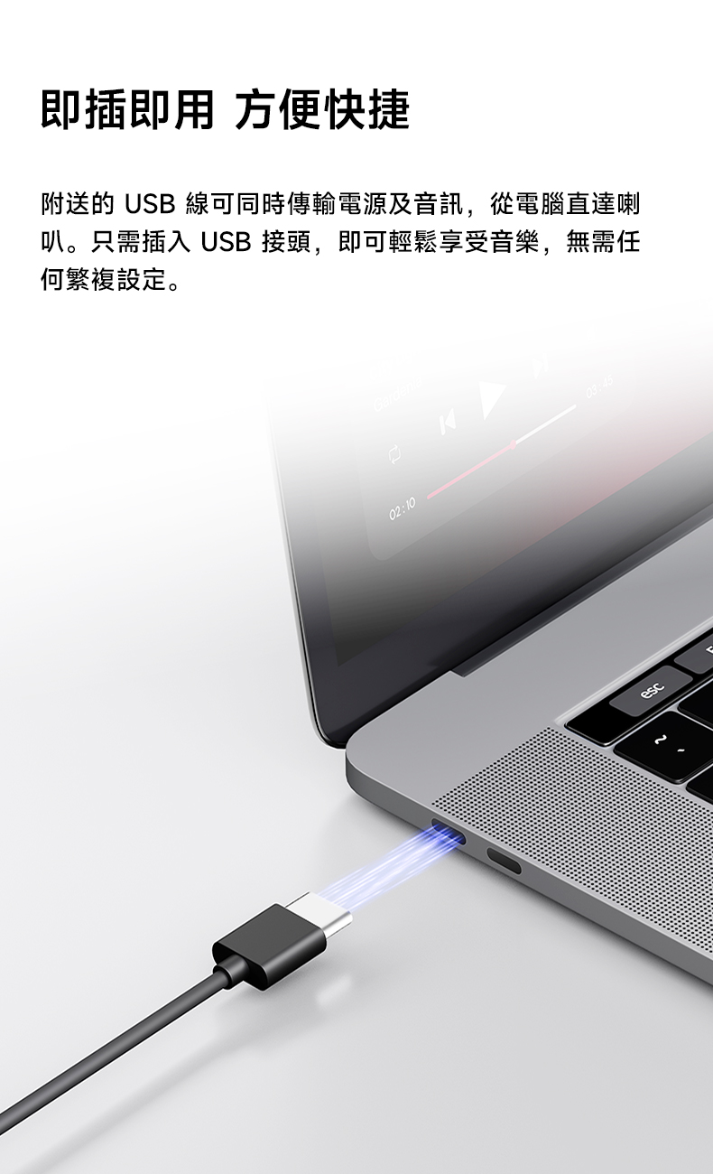 - 音訊輸入: Bluetooth, USB-C, AUX