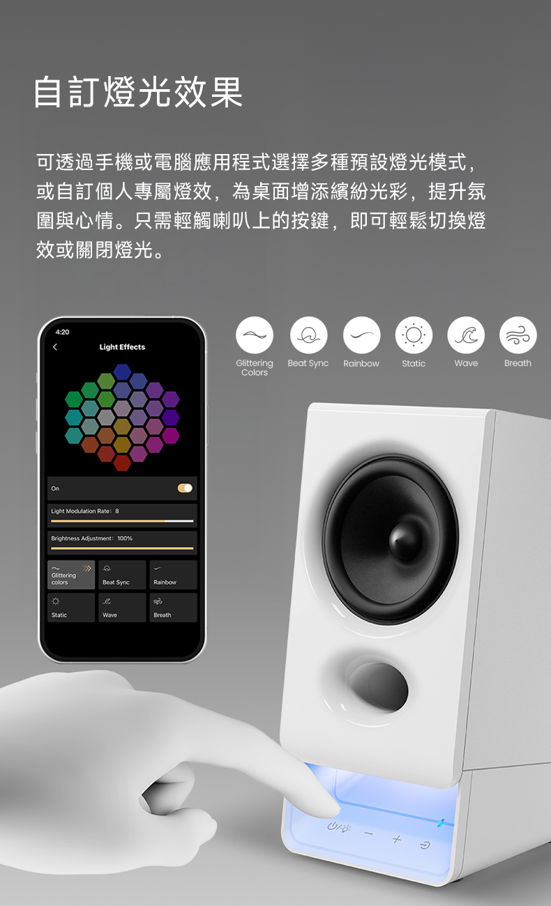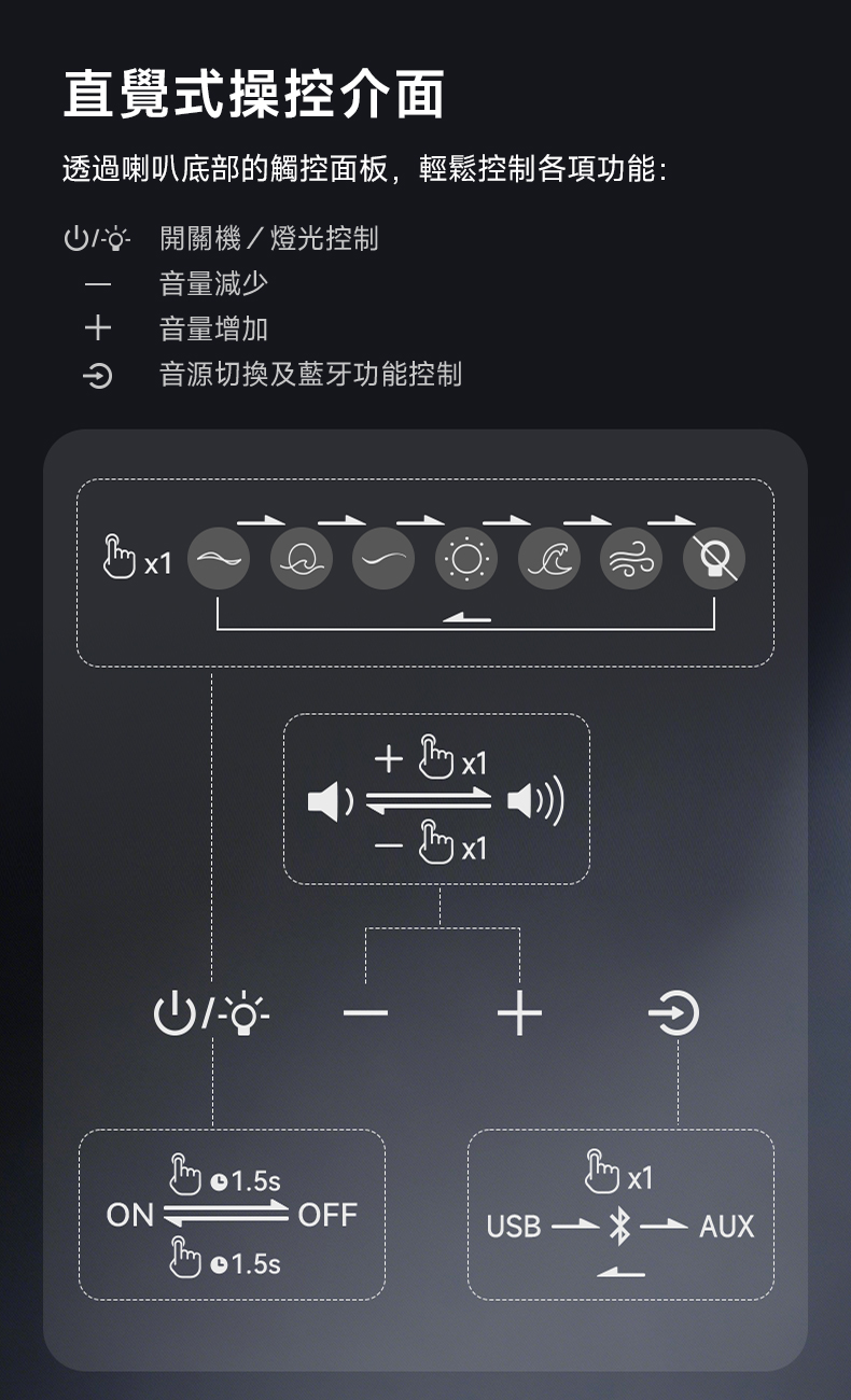 - 觸控面板:電源(燈效切換)