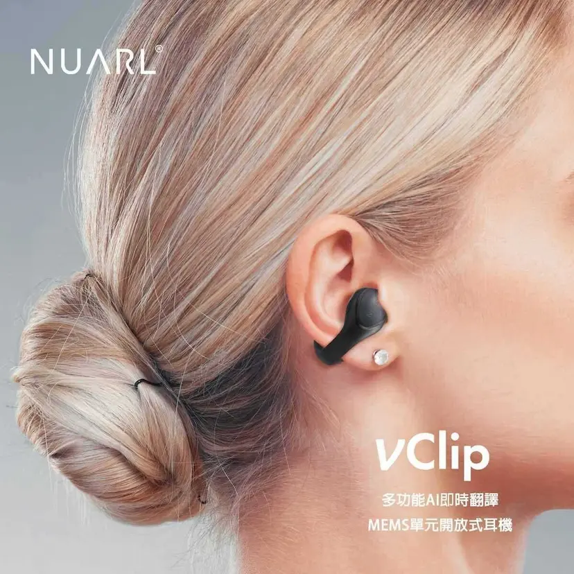 Nuarl - vClip (Nu-Clip) 即時語音翻譯開放式真無線耳機 (黑色/白色)