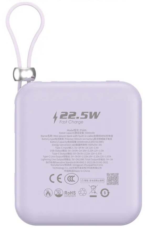 支援 PD 3.0 及 SCP 快充技術,最高輸出達 22.5W 。不論是手機還是平板電腦,都能以最高效率快速回電,讓你的數碼生活保持高效節奏 。