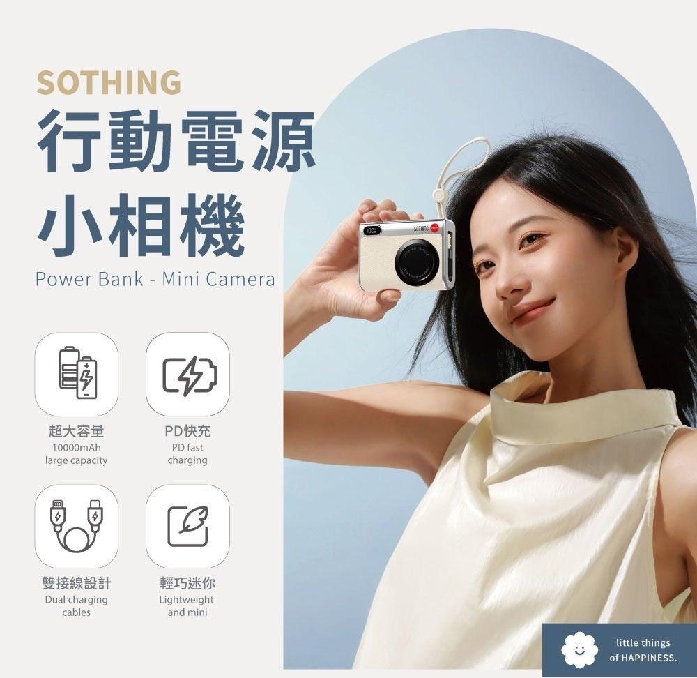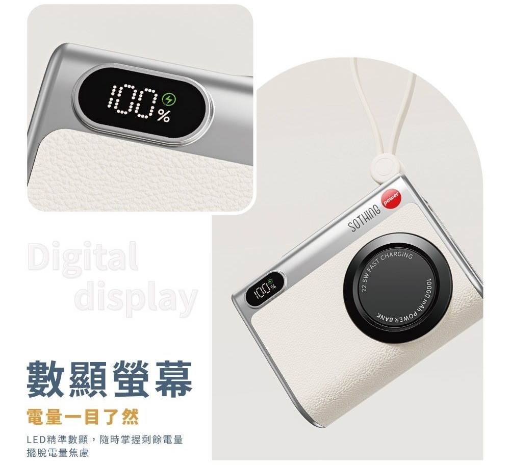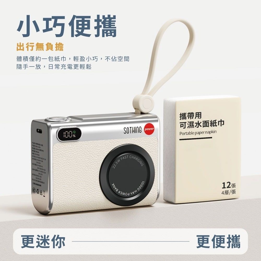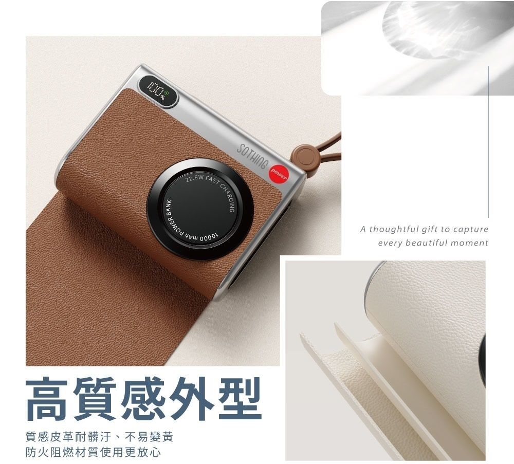 [3C CCC 認證] Sothing - 向物「小相機」10000mAh 22.5W快充流動電源 (自帶充電線) DSHJ-S-2414 [棕色 / 白色]