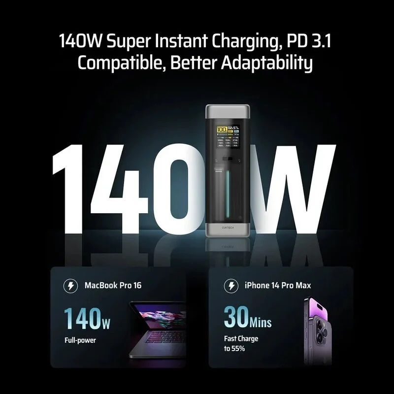 - 140W 超高速充電:支援最新 PD3.1 協議,為 MacBook Pro 等裝置提供真正的快速充電體驗,效能領先一般高功率行動電源。
