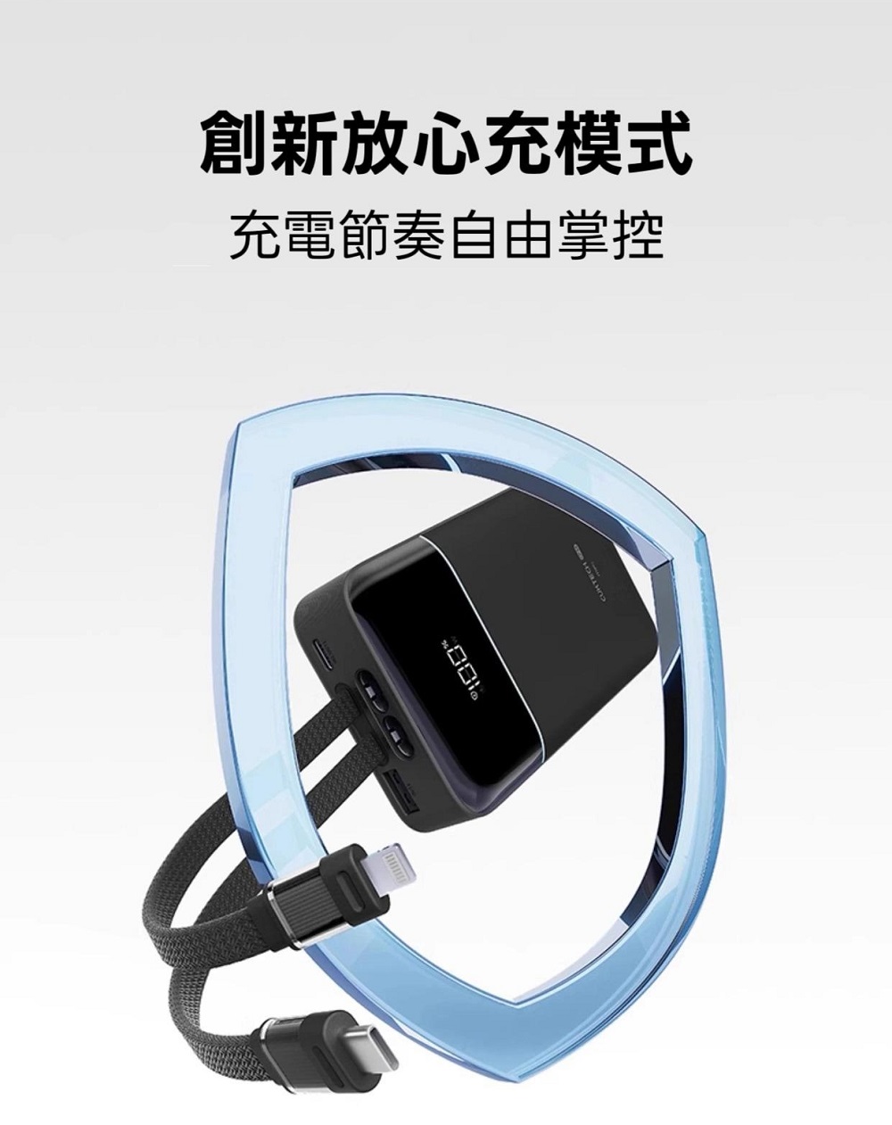 - 清晰數碼顯示窗:充電功率、剩餘電量一目了然。