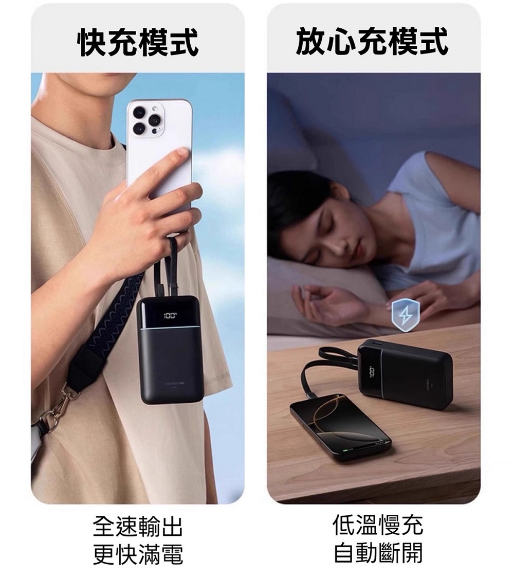 - 20000mAh 大容量:為 iPhone 16 約可充滿 3.7 次,外出旅程更無憂。