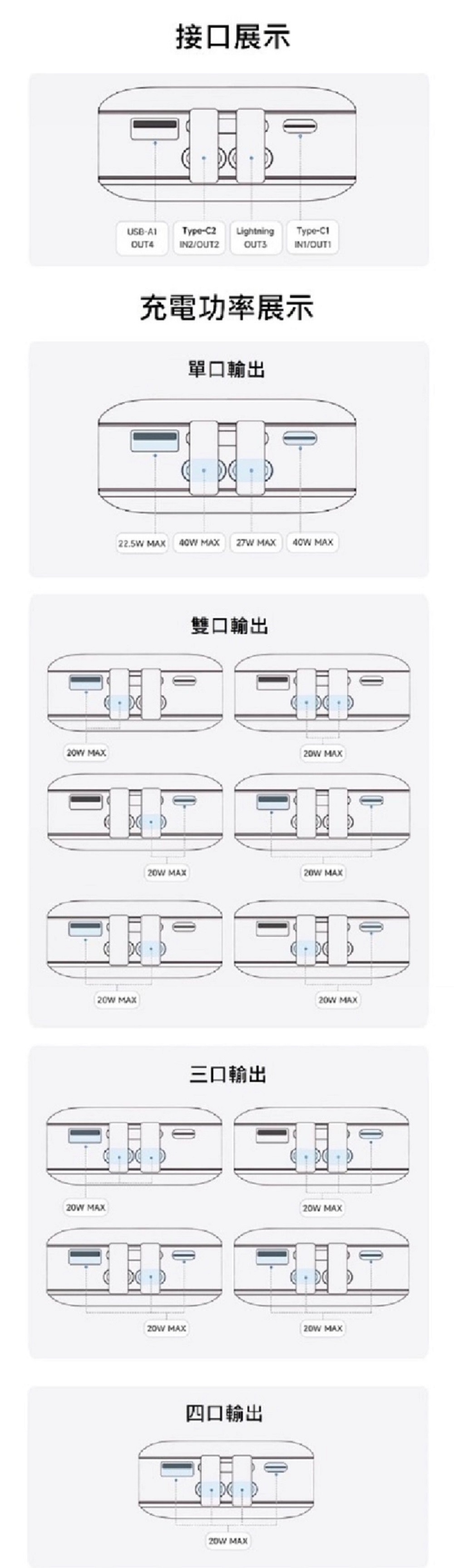 - 輸出介面:Type-C/USB-A/Lightning