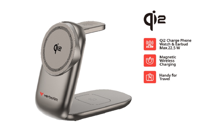 使用 Verbatim 三合一 Qi2 無線充電底座,簡化您的充電設定。這款多功能底座可同時為您的手機、手錶和耳機充電,告別雜亂的線材。總輸出功率高達 22.5W,提供快速可靠的充電體驗,讓您的裝置隨時可用。