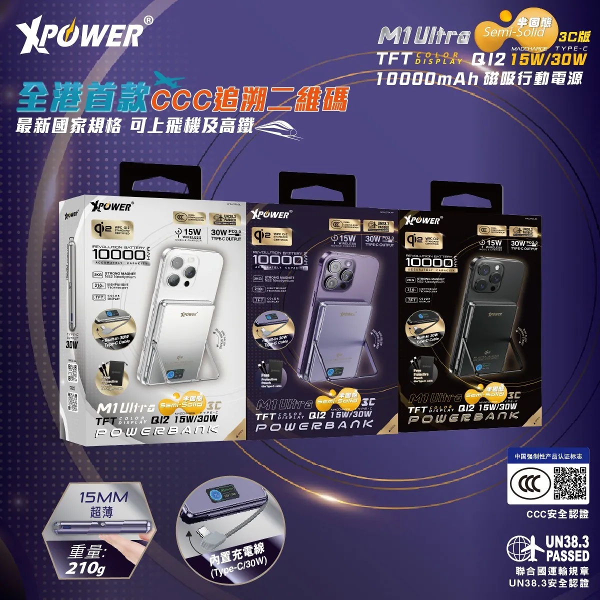 ![[預購] [3C 認證及可追溯二維碼] XPower - M1 Ultra半固態3C版TFT 彩屏顯示 QI2 Magcharge 10000mAh磁吸行動電源 [多種顏色] [預計送貨時間: 2026年4月14日] XP-M1U_QR-ALL](https://shop.theclub.com.hk/media/catalog/product/cache/be17b97d69409caa72a0e4a210ce1812/x/p/xp-m1u_qr-all.jpg)