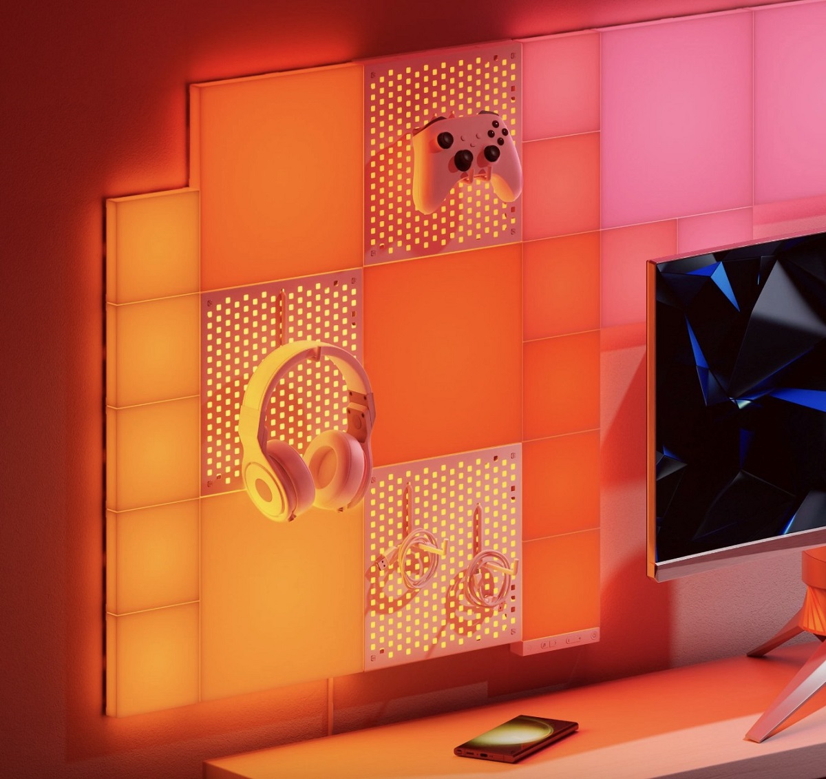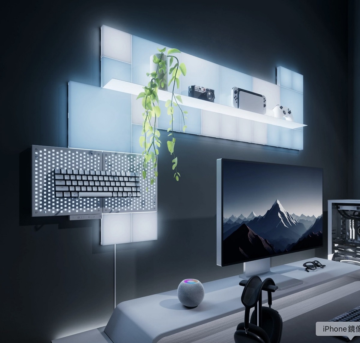 最大化桌面空間,避免雜亂,並通過節省空間的架子和發光洞洞版,讓您的物品閃耀不已!