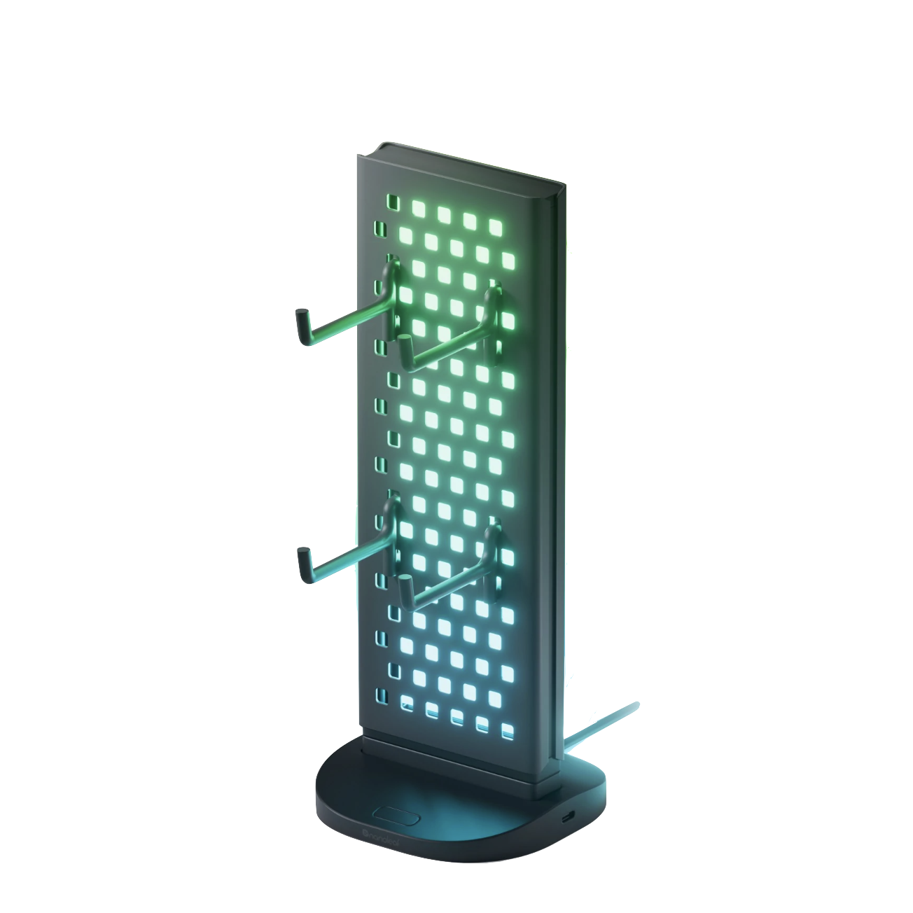 Nanoleaf 桌面釘板收納架是一款多功能的三合一集線器,將生動的照明效果、實用的存儲空間和無縫的連接功能融為一體。