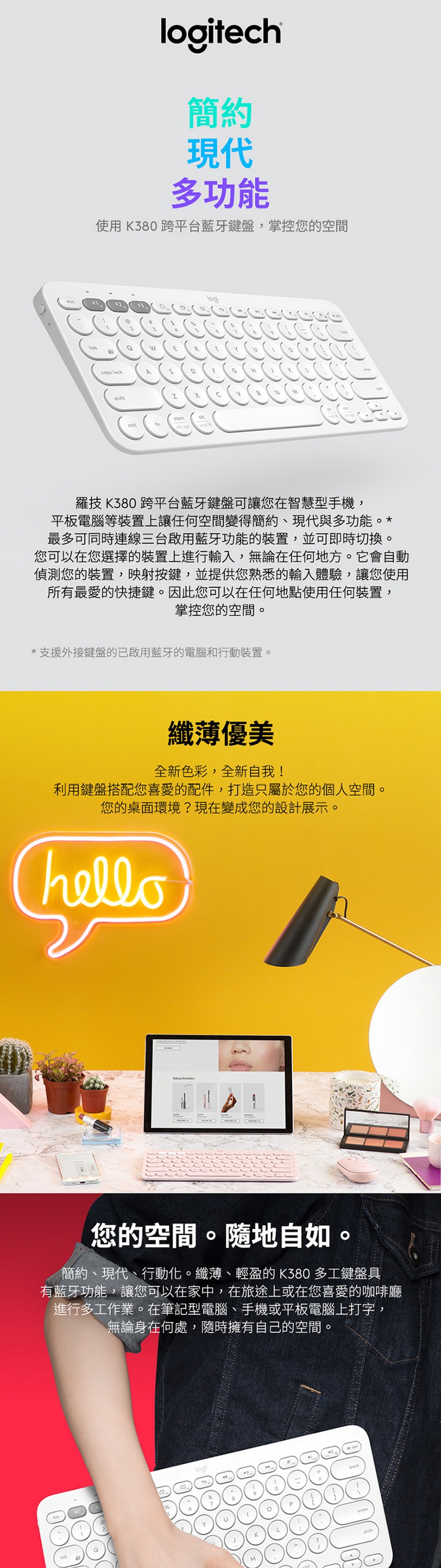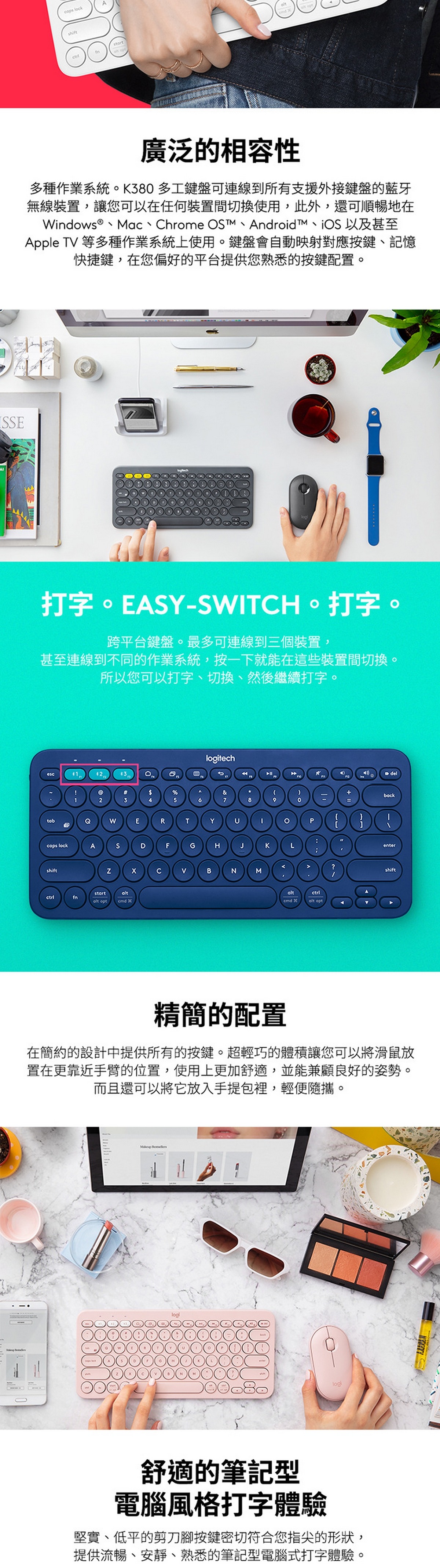 K380 跨平台藍牙鍵盤 (玫瑰粉/白色):