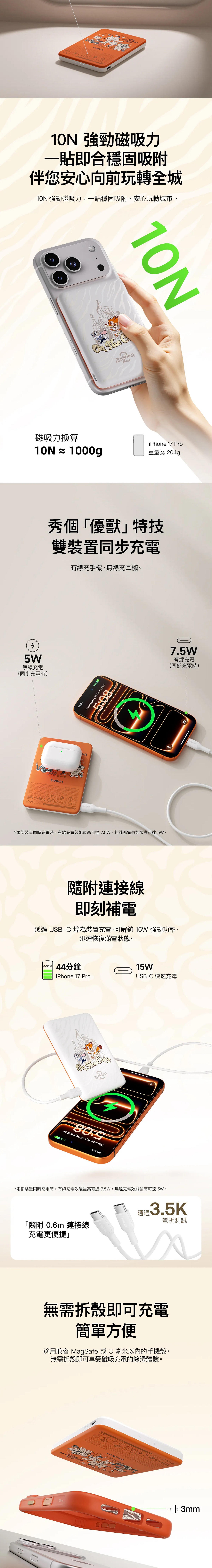 - 單一裝置最高可提供 7.5W 無線充電及 15W USB-C 有線輸出功率