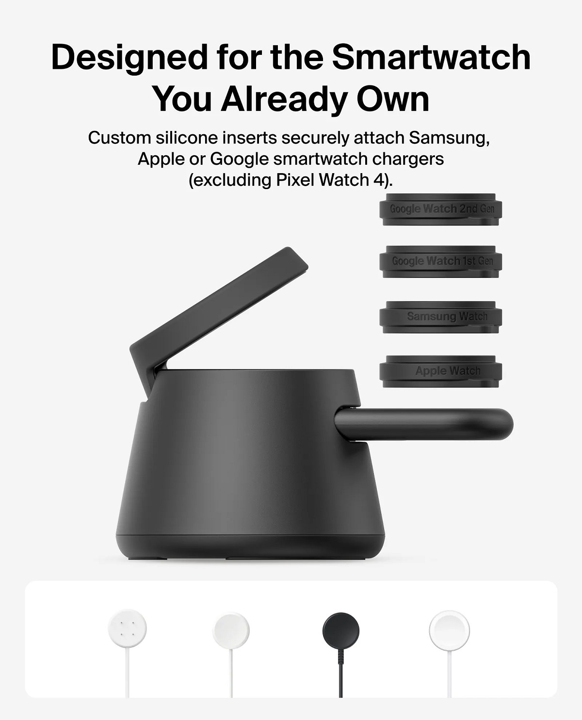 • 特製矽膠配件支援為 Samsung、Google 與 Apple 智能手錶 (不含 Pixel 4) 充電±