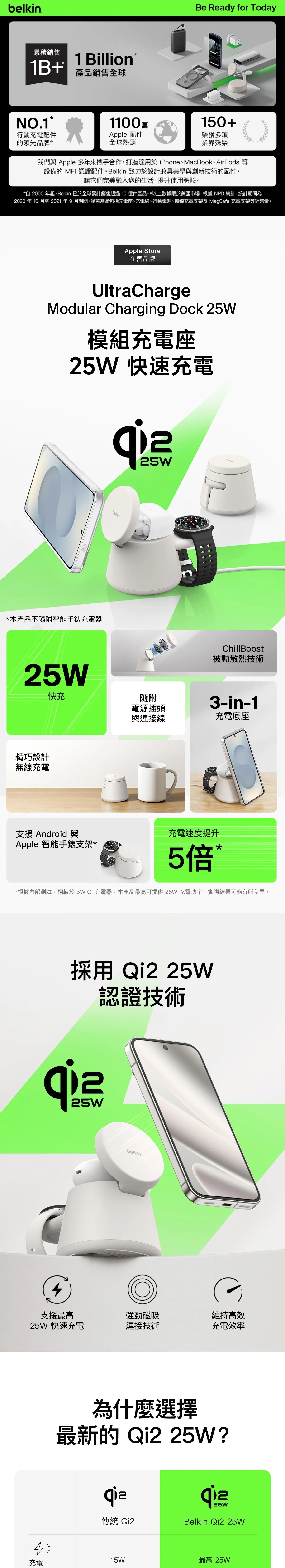 [預購] Belkin - UltraCharge Qi2 模組充電座 25W [黑色/ 白色] [預計送貨時間: 27-Mar-2026]