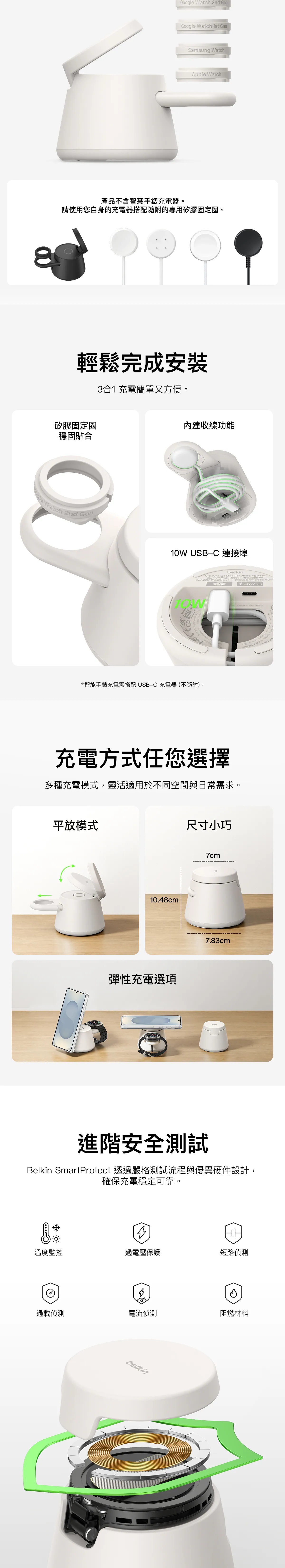 • 一座裝置同時為手機、耳機與智能手錶充電
