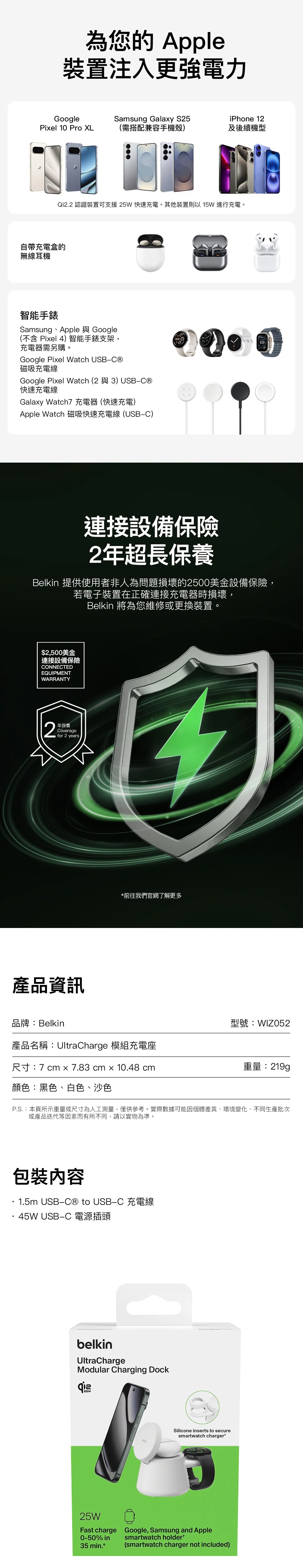 [預購] Belkin - UltraCharge Qi2 模組充電座 25W [黑色/ 白色] [預計送貨時間: 27-Mar-2026] BELKI_WIZ052_ALL