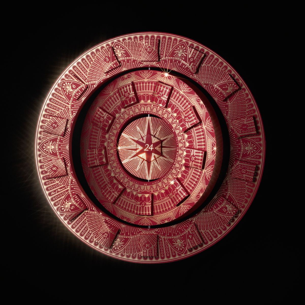 凱旋門節日倒數日曆的設計靈感源自戴高樂廣場及其十二條大道,倒數日曆以華麗的風格重新詮釋了聖誕節的倒數驚喜:於24扇窗戶展現巴黎的魅力。