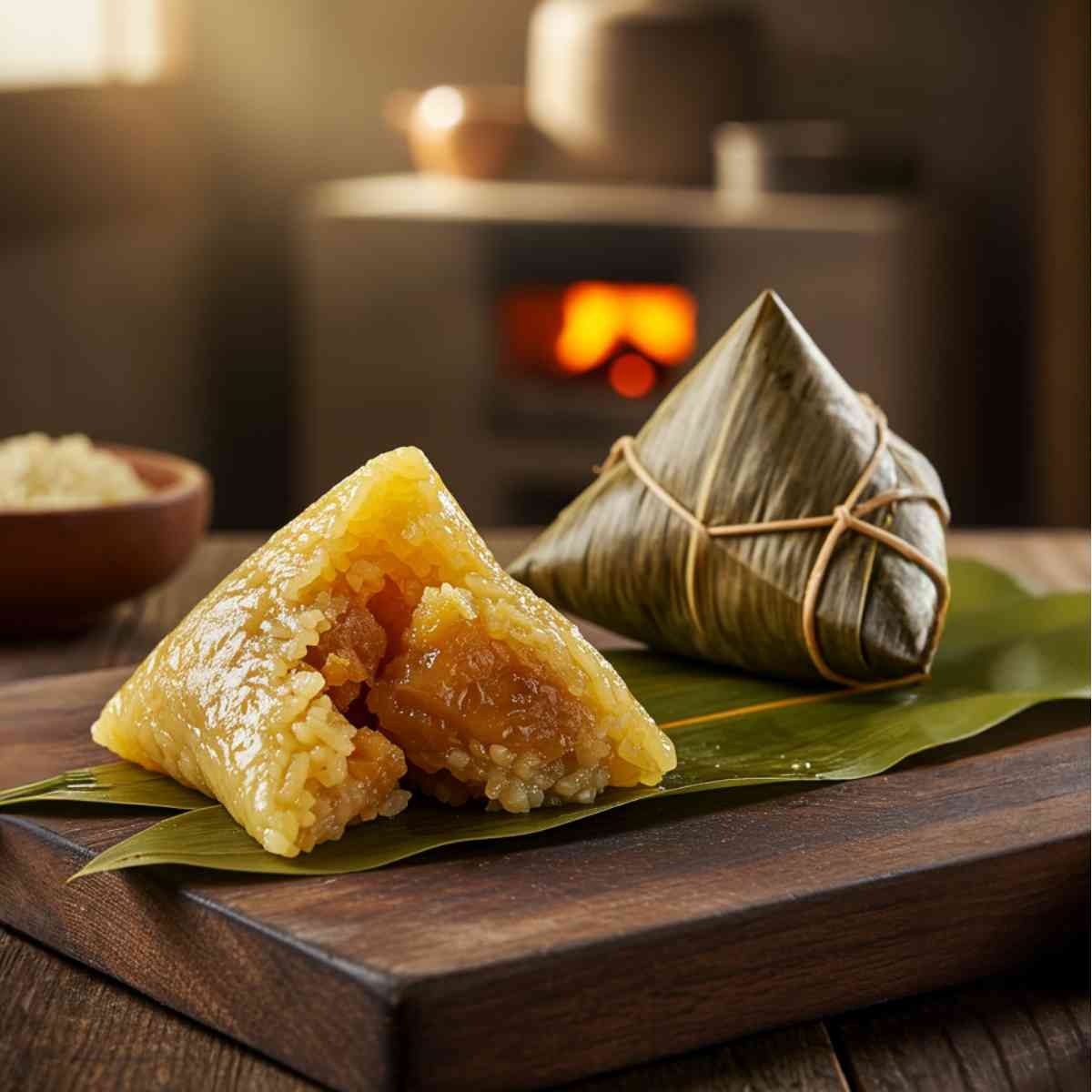 經典的廣式甜粽,選用精選紅棗蓉作餡,細膩香甜,搭配梘水粽獨特的琥珀透亮色澤與彈牙糯米口感,入口嫩滑細膩。細細品味,棗香與糯米的清香交織,搭配糖漿享用,甜而不膩,帶來傳統甜粽的純正風味與懷舊滋味。