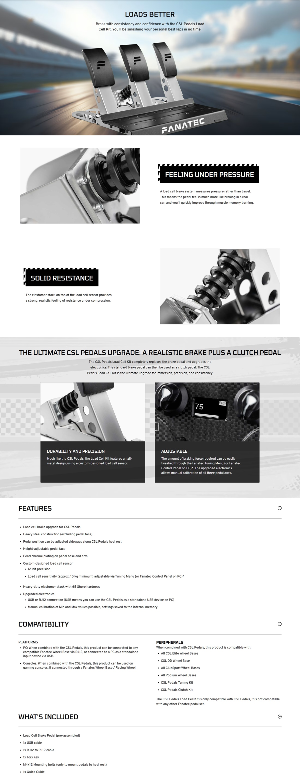 • CSL踏板荷重感測器套件僅相容於CSL踏板,不適用於其他Fanatec踏板組。