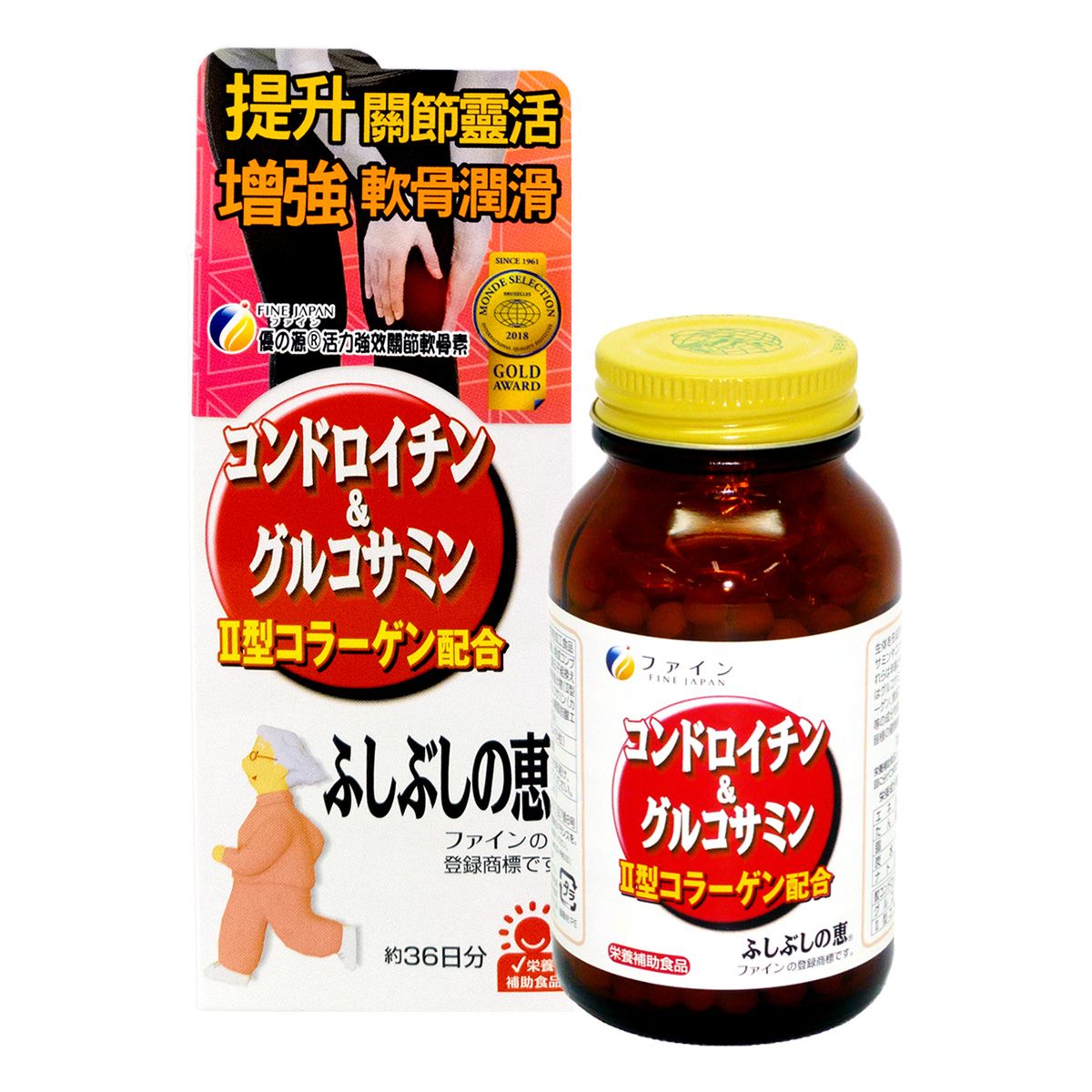 有利於骨骼的被公應為世界上唯一的天然II型膠原蛋白(非變性活性II型膠原蛋白),含有鯊魚軟骨素、蟹類的葡萄糖氨,豐富礦物質的烘乾昆布粉,保持骨骼健強的大豆異黃同素,加倍功效的維他命C和維他命B群。