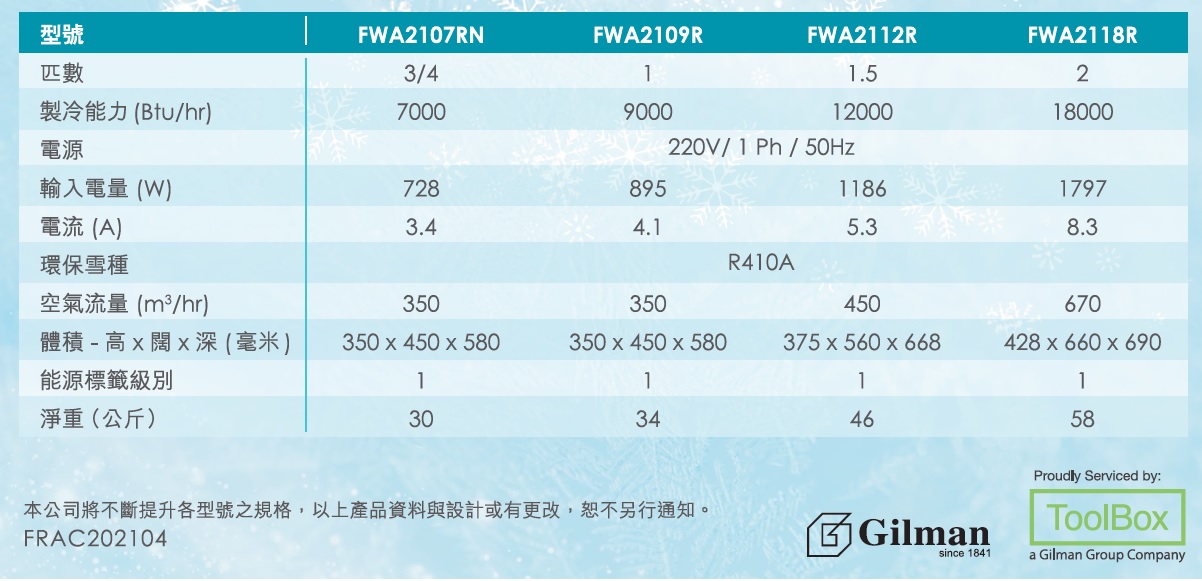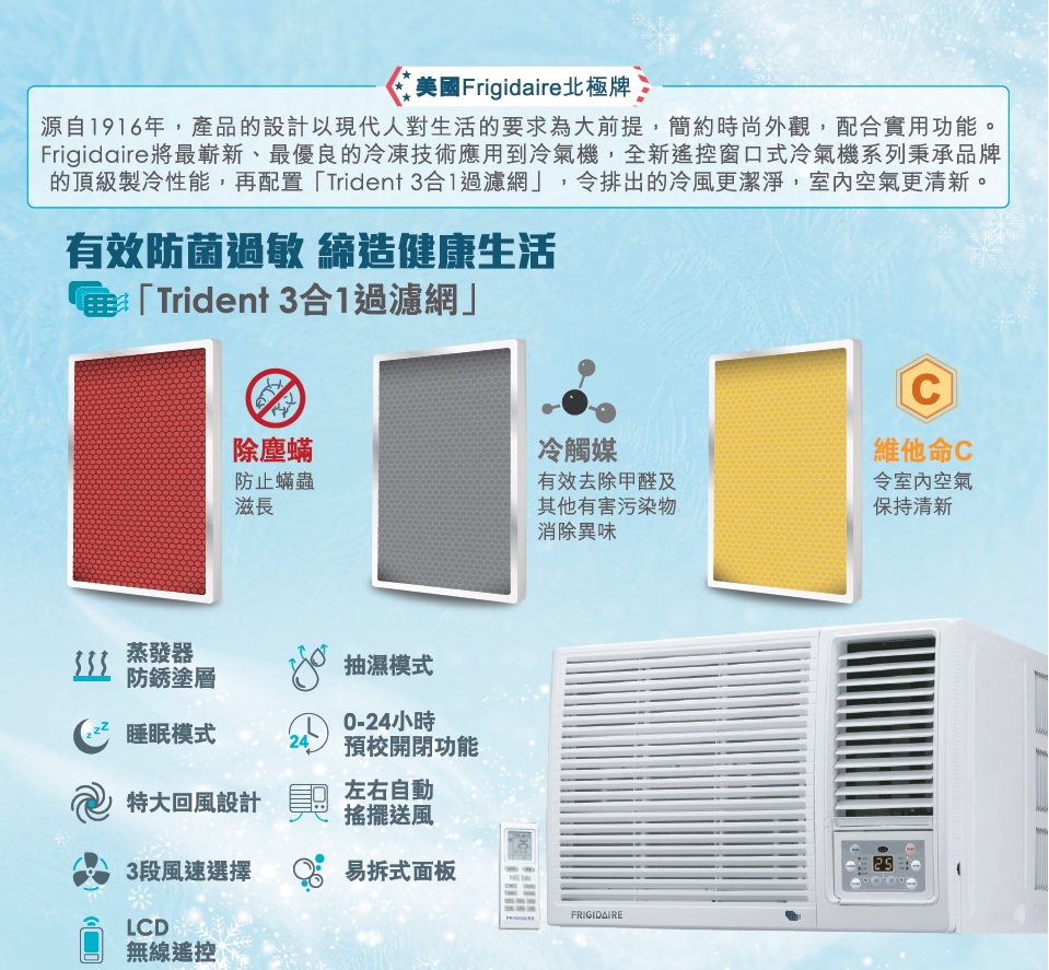 Frigidaire - 北極牌 2匹獨立抽濕遙控型窗口式冷氣機 FWA2118R (包基本安裝)