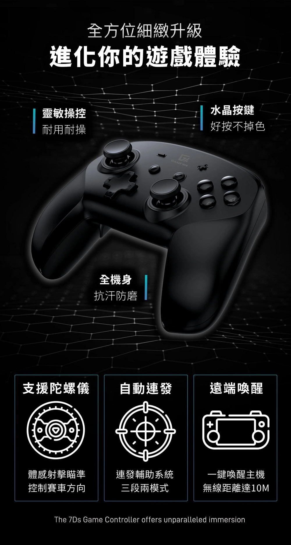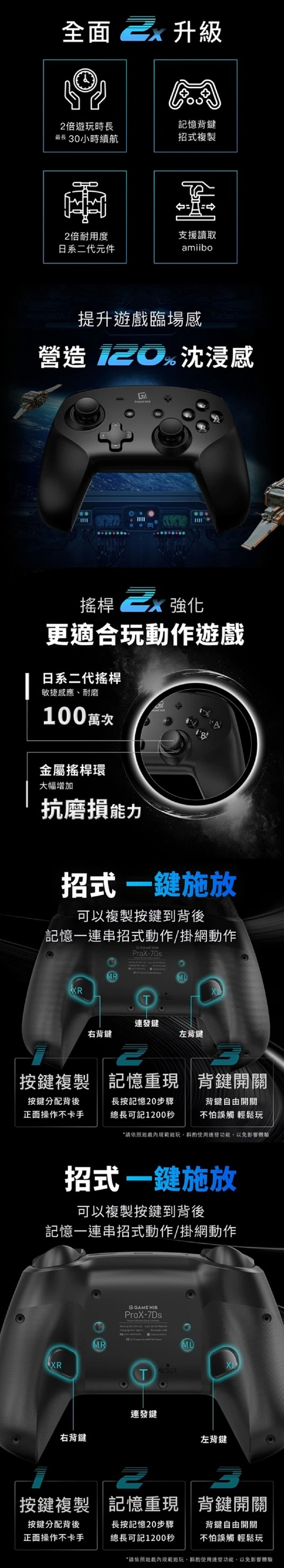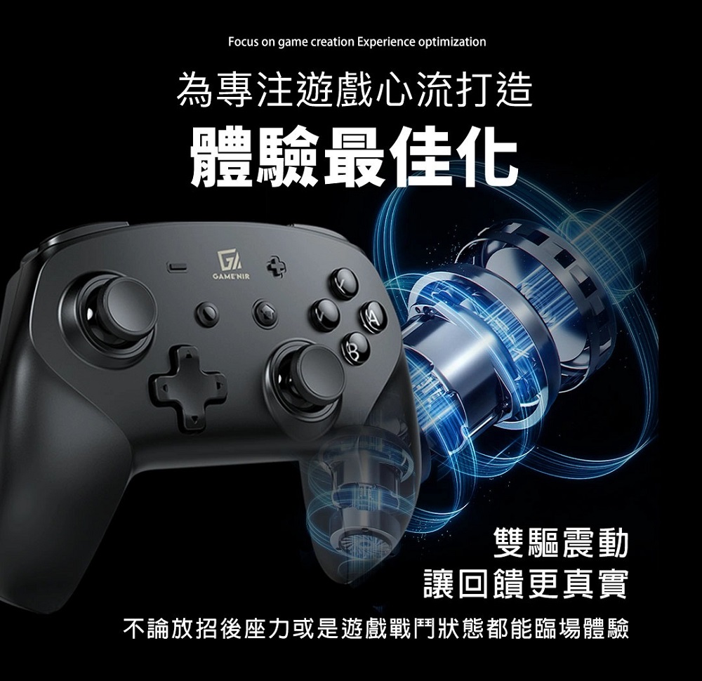 - 第七代GAME'NIR遊戲手把,超越Pro手把多段震度,比 joycon 更耐玩!