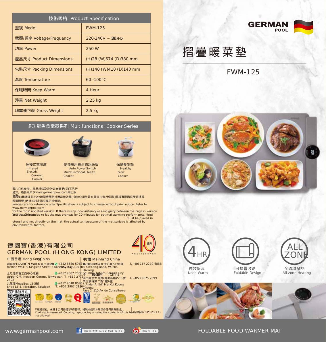 保養條款: 一年 德國寶家電維修及客戶服務中心 地址: 九龍灣大業街59號三湘九龍灣貨運中心地下B室 服務熱線/ Hotline: 2773 2888 開放時間: 星期一至星期六 09:00-13:00 , 14:00-18:00 (星期日及法定假期休息)