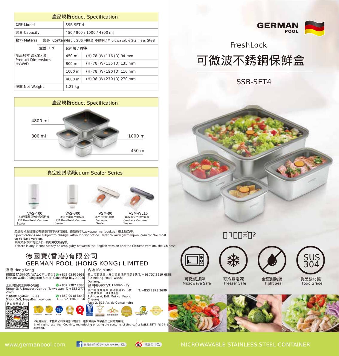 德國寶 FreshLock可微波不銹鋼保鮮盒 SSB-SET4