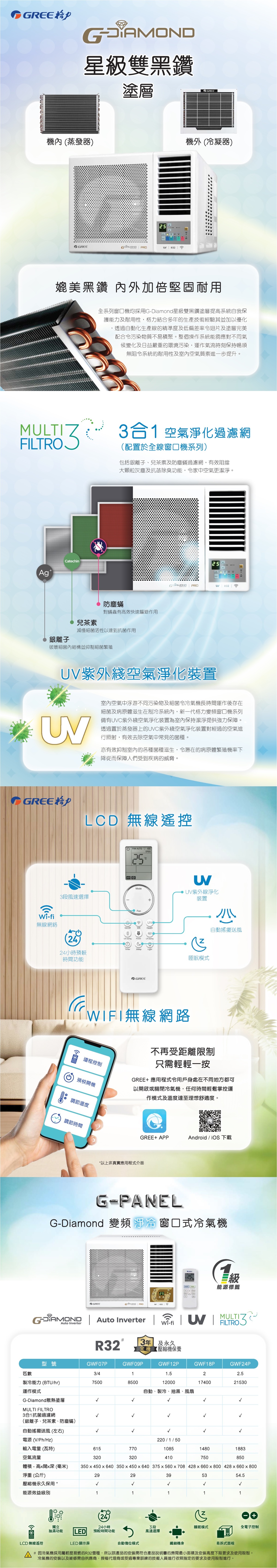 格力 - GWF09P 1匹 8500BTU 淨冷窗口式冷氣機