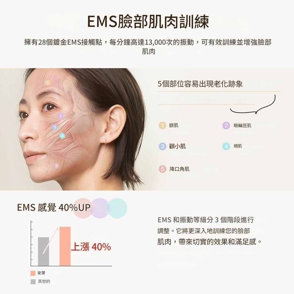 - EMS微電流:促進肌膚緊緻,提升彈性。