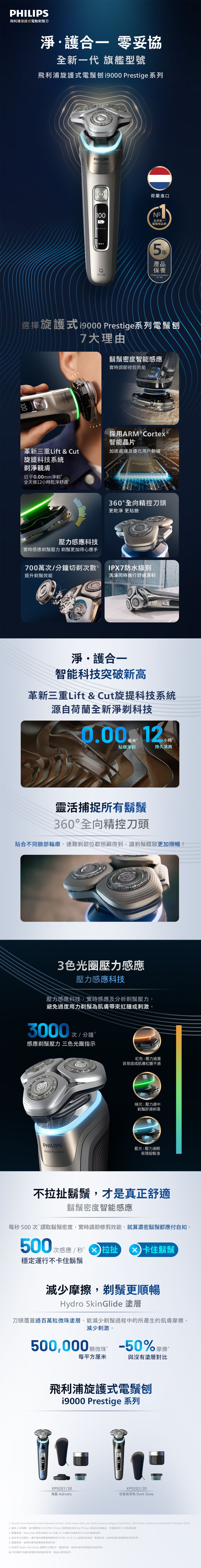 4. i9000 Prestige Ultra系列型號為72片納米科技雙重精鋼切剃刀片,切剃次數為800萬次/分鐘3。