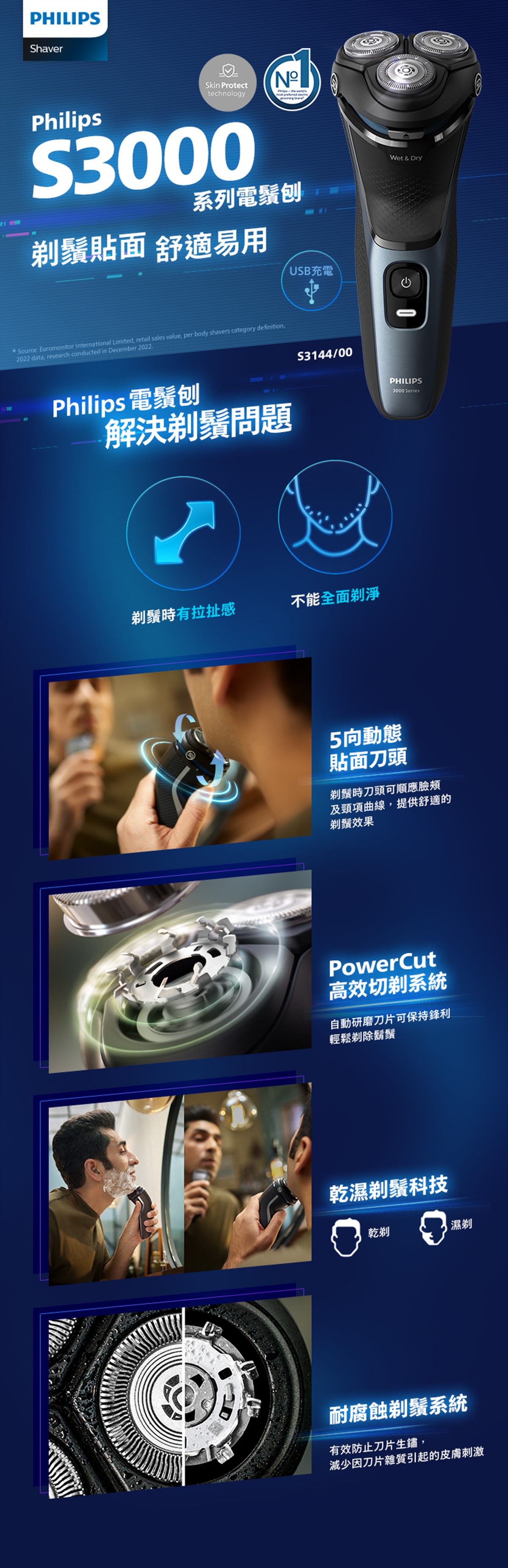 Philips -S3000 乾濕兩用電鬚刨 | S3144/00