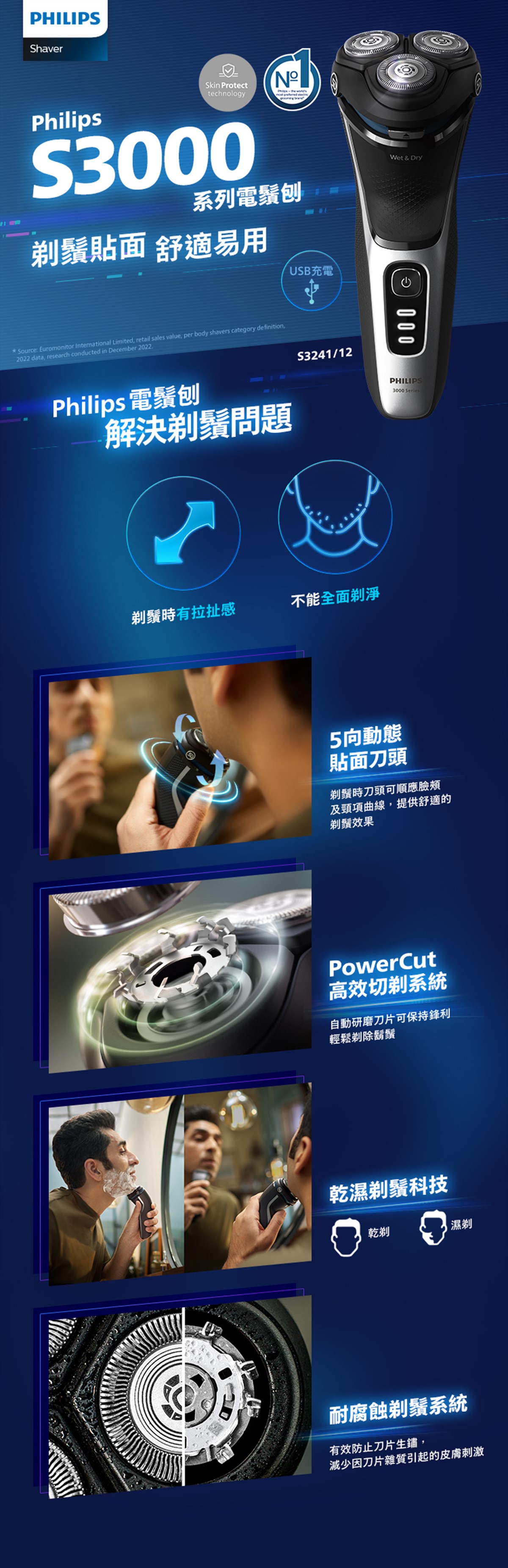 Philips -S3000 乾濕兩用電鬚刨 | S3241/12