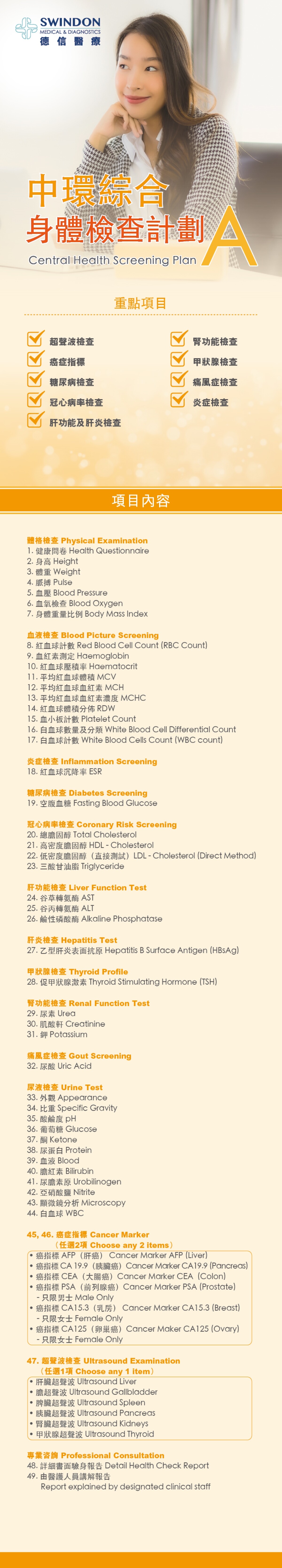 Swindon Medical - 【中環店】中環綜合身體檢查計劃 A HC-CTL-A