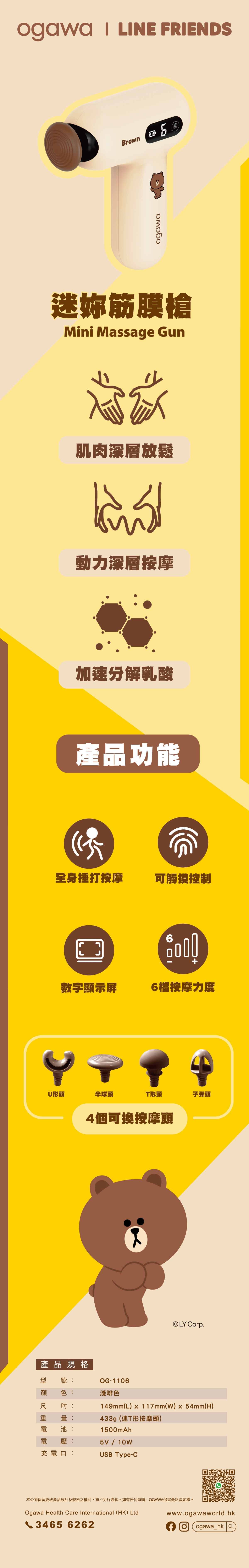 OGAWA - Line Friends 迷你筋膜槍 - 棕色熊大