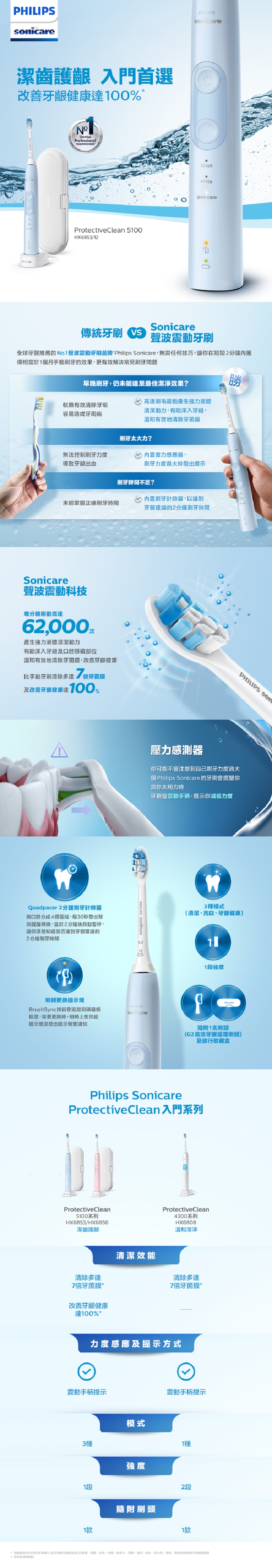 Philips - Sonicare 電動牙刷潔齒護齦款︱Protective Clean 5100聲波震動牙刷 (淺藍)︱HX6853/12