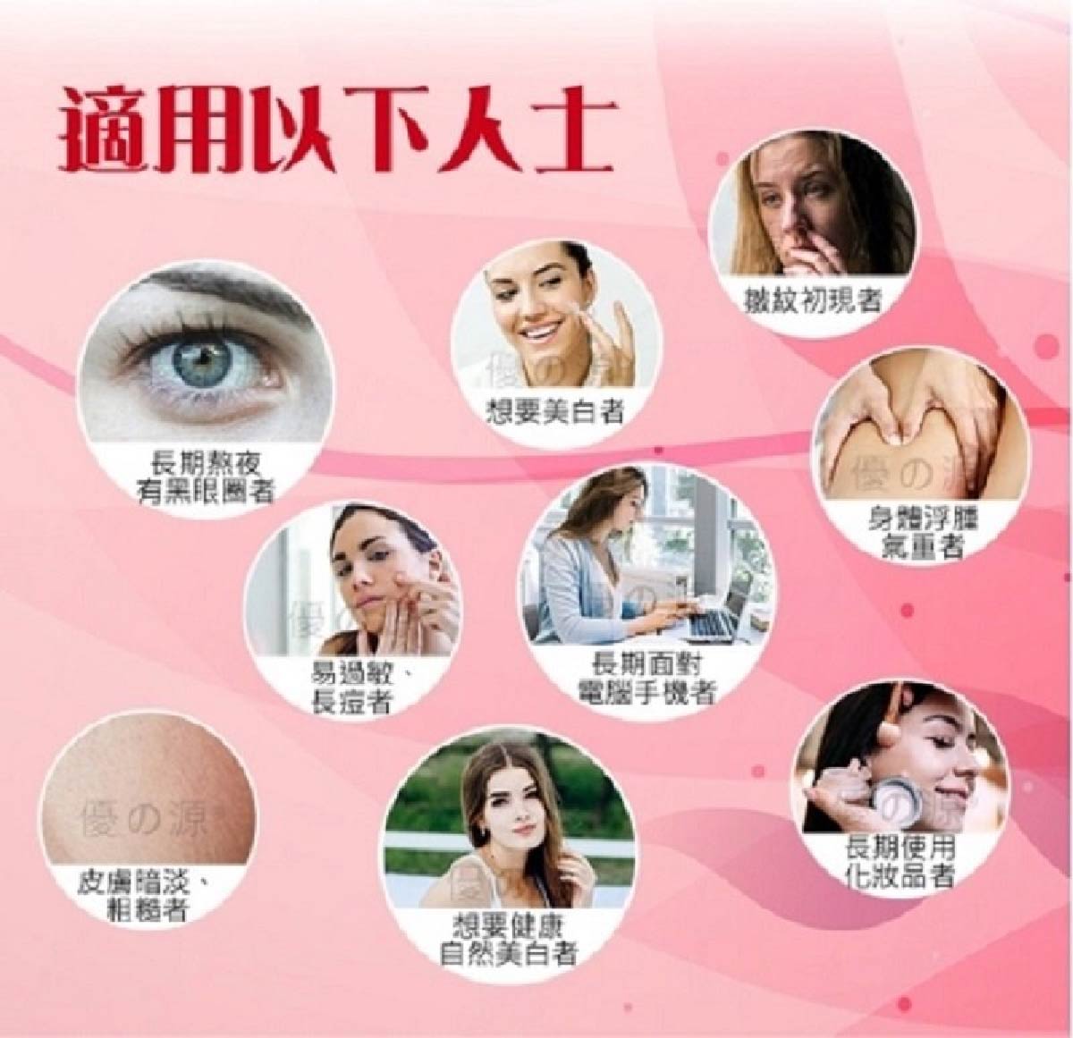 生活緊張,忙碌而飲食不正常,營養不均,美白和追求美容的女士。