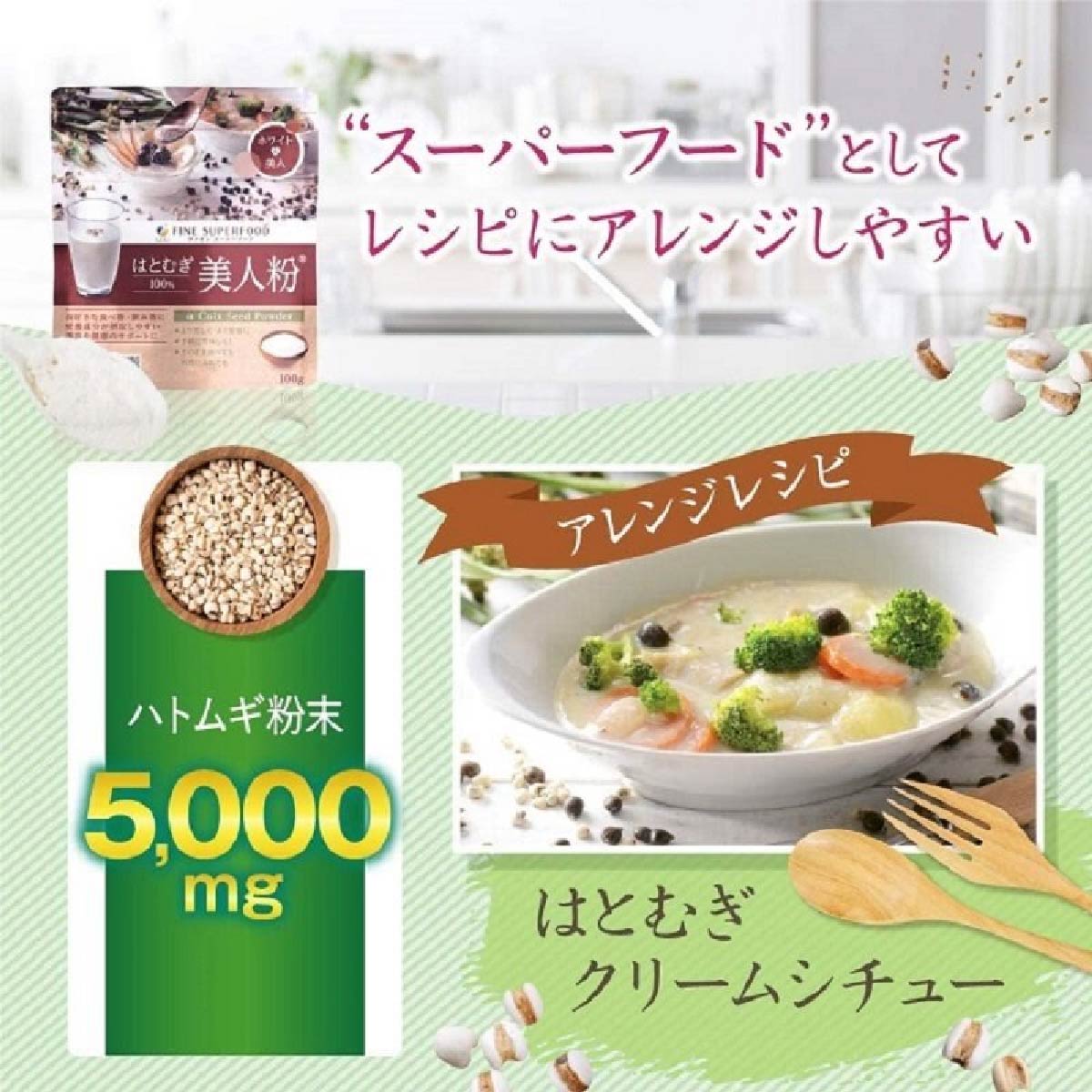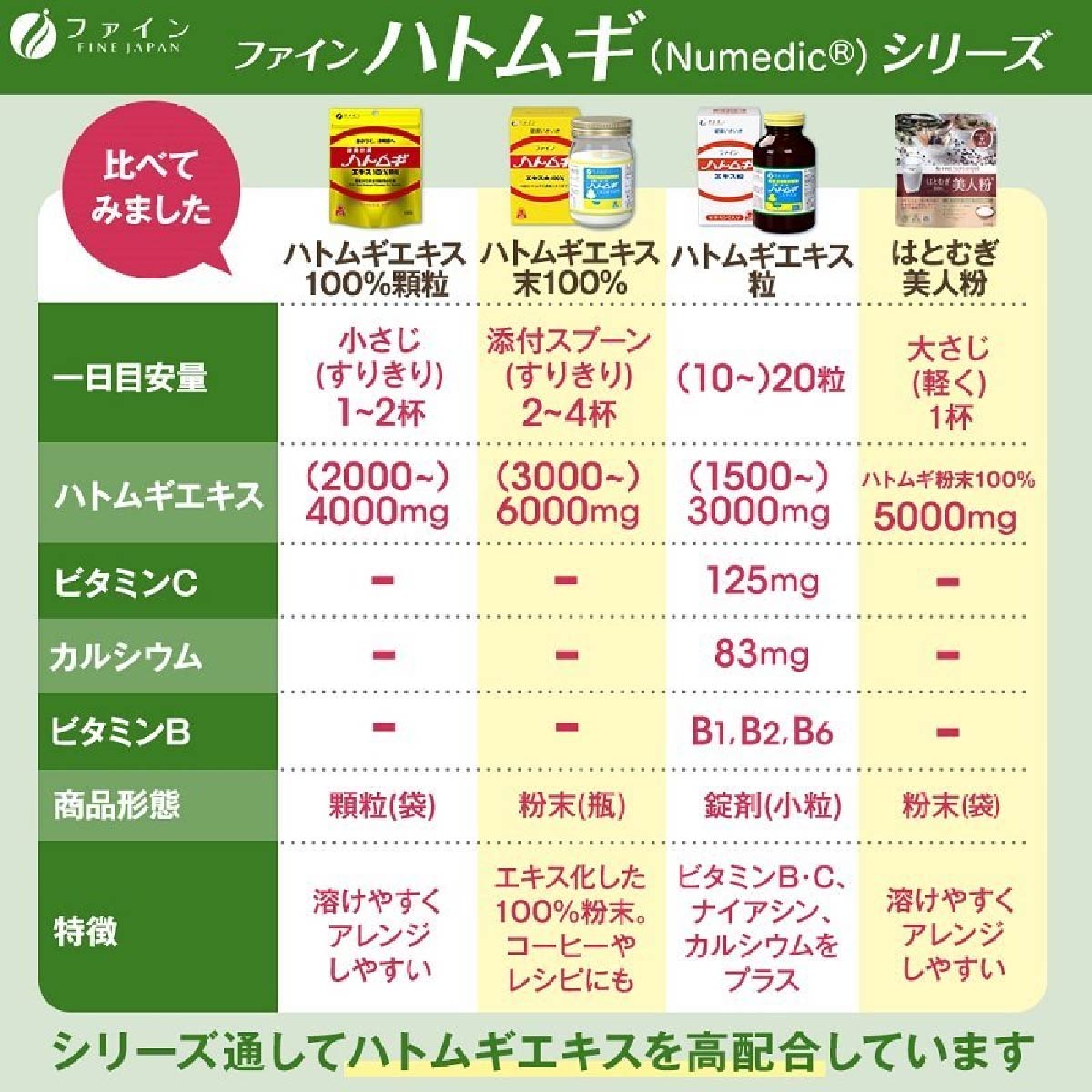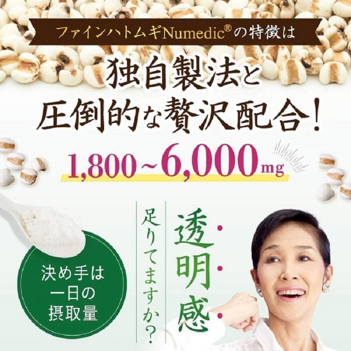 薏仁本身擁有不宜被吸收的特性,薏仁抽出物的顆粒粉末,改善了不易被吸收的問題,含有豐富濃縮薏仁,蛋白質、维生素B1、B2,C,使用後皮膚光滑,减少縐紋,減淡色素斑點,排毒,美白和美容有很好的效果。薏仁除了有美容效果之外,還能把體内多餘的東西排除體外。
