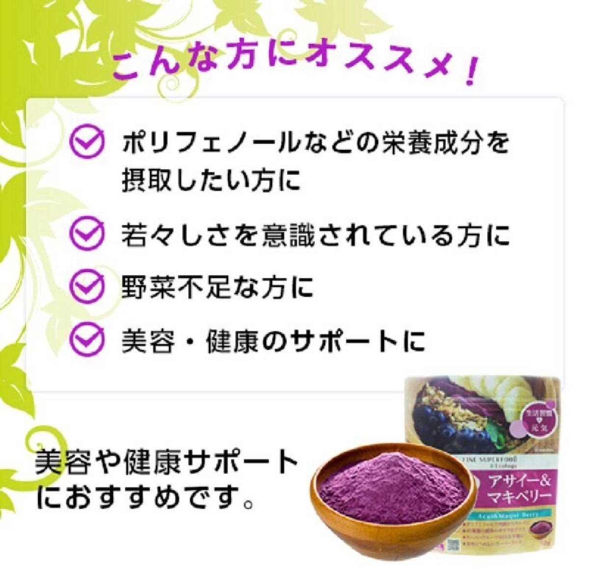 MAQUI BERRY提取物粉末,ACAI提取物粉末,濃縮植物酵素(原材料裹一部分裹含有,蘋果,香蕉,獮猴桃,桔子,山葯,大豆)。​