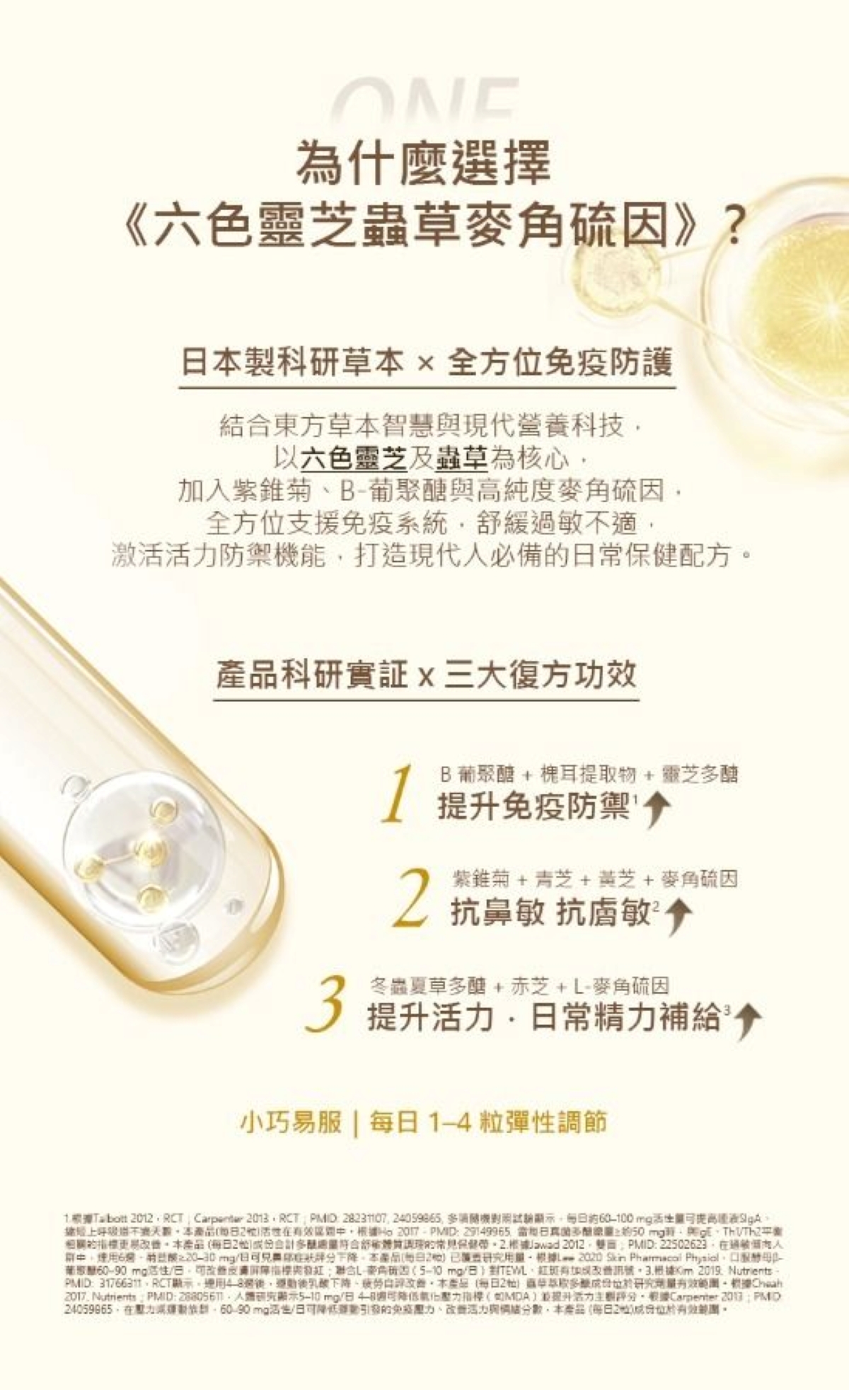 註:以上為營養生理機能之科學佐證,產品屬食用補充品,並無預防或治療疾病功能。